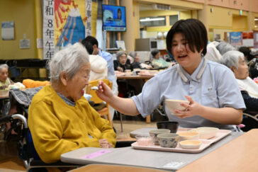 私達は、職員全員が同じ目標で同じ考えをもってお年寄りに接しようと考えております。その中から、“潤い”を共通の目標として、職員が利用者さんの心に潤いを与え、職員も利用者さんから潤いを得るような環境を目指しています。
