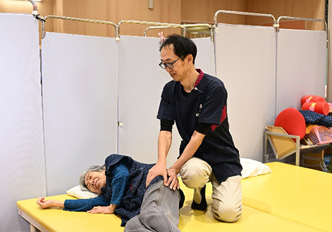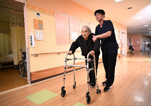 機能訓練が必要な方に、主治医の指示により、理学療法士、作業療法士、言語聴覚士の指導の下で本格的なリハビリテーションを行います。リハビリテーションにより身体の機能を回復、向上、保持し寝たきり防止や予防を目指しています。