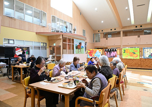 担当のケアマネジャーと相談しながら作成したケアプランに基づいて、自宅から施設までの送迎からはじまり、毎日異なったレクリエーション、日常生活の介助、食事、入浴などのサービスを提供しています。